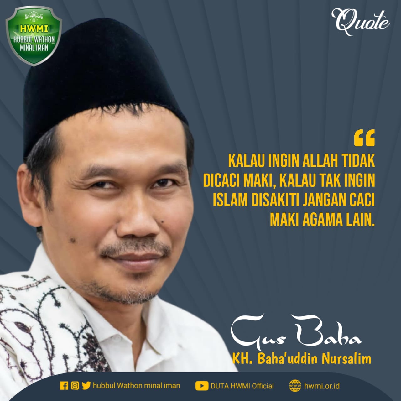 "Jaga" Allah swt Admin August 29, 2021 Quotes Comment "Kalau ingin Allah tidak dicaci maki, kalau tak ingin islam disakiti jangan caci maki agama lain."- Gus Baha - Bagikan artikel ini